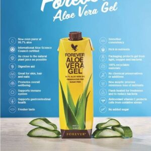 nearly double the amount required for certification!Forever Aloe Vera Gel is aseptically processed, allowing the formula to remain free of added preservatives and boast an amazing 99.7% pure inner leaf aloe vera gel. Packaged in 100% recyclable PET packaging made with 50% post-consumer recycled content, Forever Aloe Vera Gel ensures that you can enjoy the fresh taste of undiluted aloe vera gel with all of its potent properties just as nature intended.