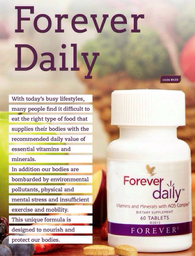 Forever Daily® is a great supplement to take in conjunction with Forever Nature-Min® our complete multi-mineral supplement to promote optimal health and vitality. Together, you can get a perfect blend of vitamins and minerals to complement a balanced, healthy lifestyle.
